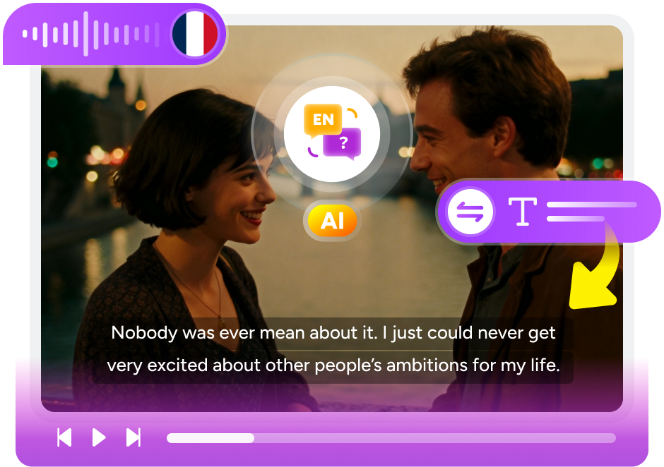 This real‑time AI subtitle generator automatically detects the spoken language. When the video is in English, only live English subtitles are shown; when it's in another language, you get both original language captions and an optional translation mode. Zero setup required. Just sit back and enjoy a subtitle experience tailored to your needs.